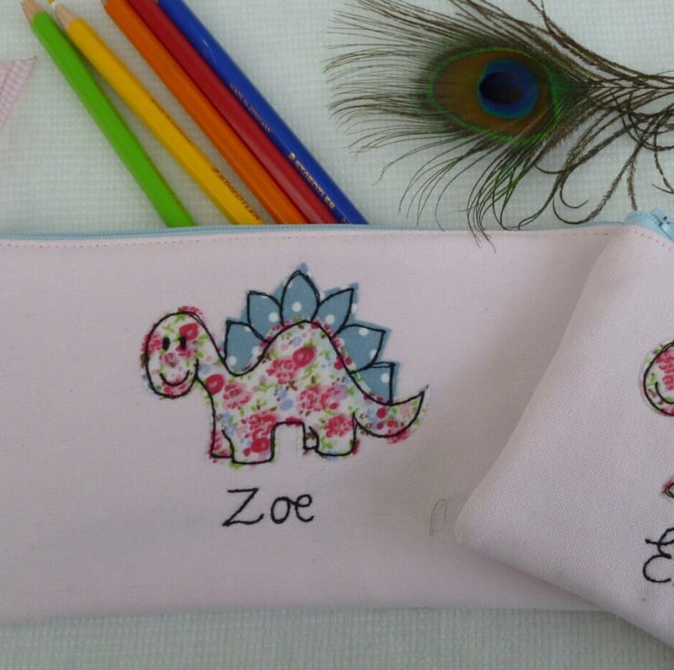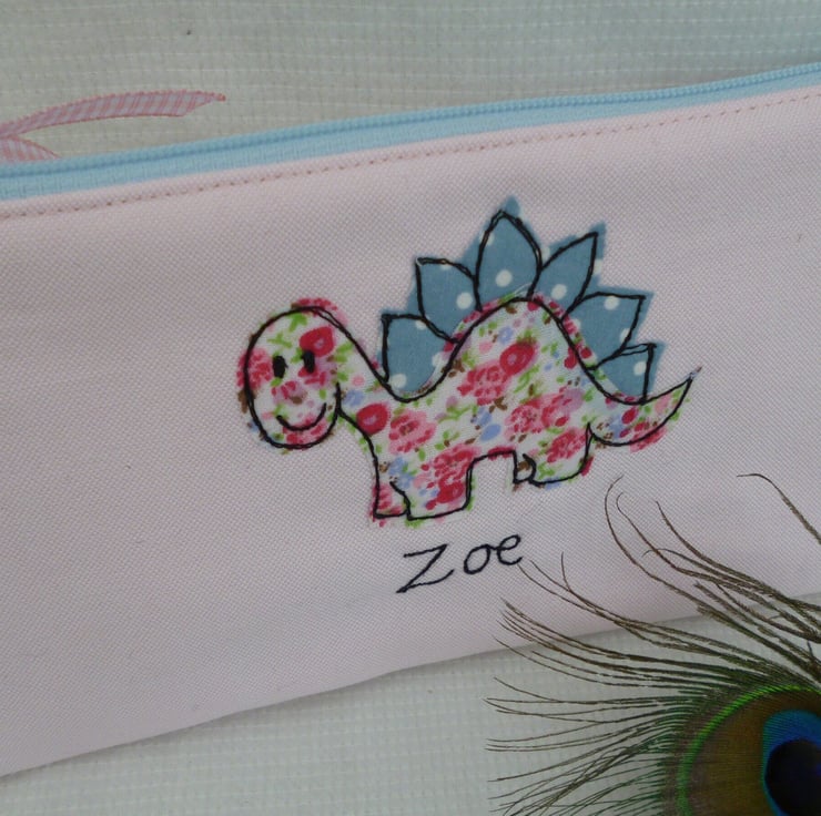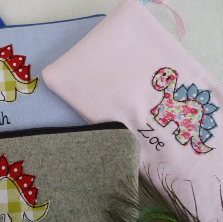 Personalised Dinosaur Pencil Case - Art Pen Pouch - free motion design