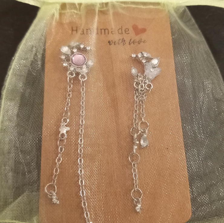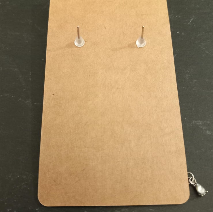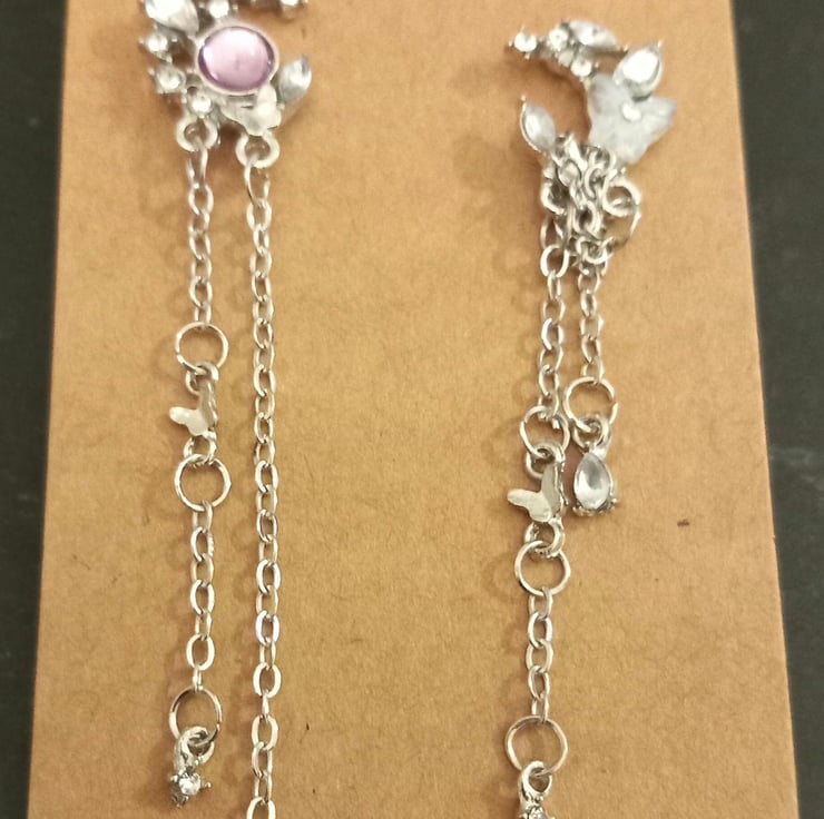 STAINLESS STEEL STUD EARRINGS WITH 5CM DANGLY CHAINS.