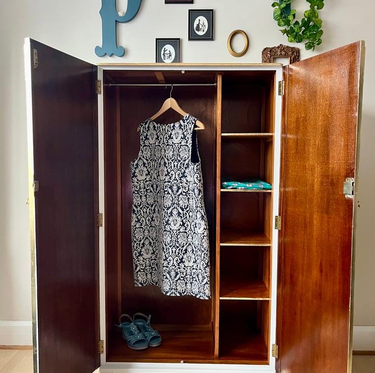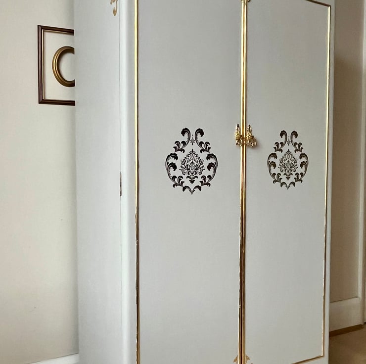 This upcycled vintage wardrobe seamlessly blends classic charm with modern elegance, making it a functional and beautiful statement piece for your home.