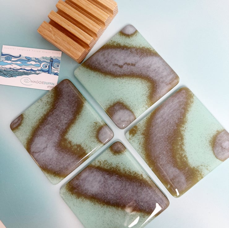 A hand made set of four fused glass coasters with a difference.