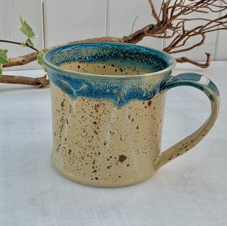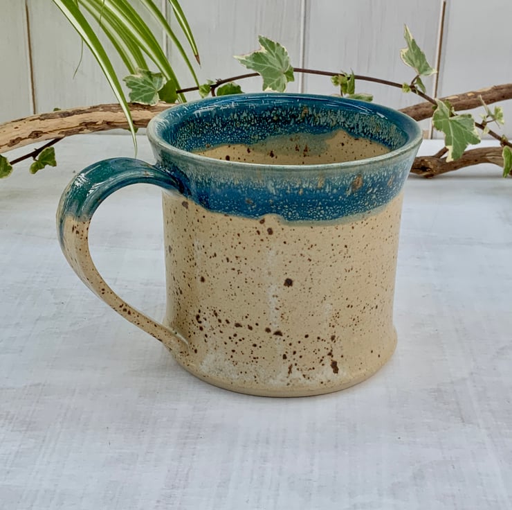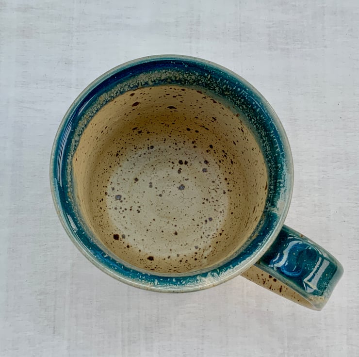 This stoneware mug is lovingly wheel-thrown for a comfortable, balanced feel in your hands. Finished in beautiful Winter Wood and Shipwreck glazes. Each piece is unique, with natural glaze flows that make every mug one of a kind. Perfect for your morning coffee, afternoon tea, or a warming hot chocolate, this handcrafted mug brings a little artistry to everyday rituals.