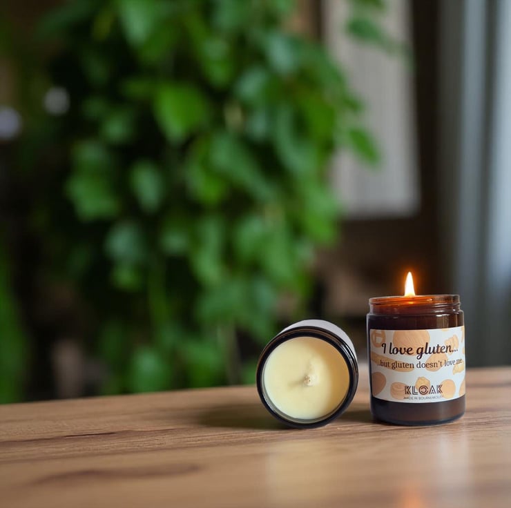 Choose from six fragrances: Vanilla, Amber & Orange, Tobacco & Oak, Fresh Linen, Lemongrass & Ginger or Marshmallow Fluff. Or, for a playful twist, try the discounted Mystery Scent – a surprise fragrance I’m currently trialling. Funny, handmade and relatable, this candle is the perfect indulgence for anyone surviving gluten-free life with style and humour.