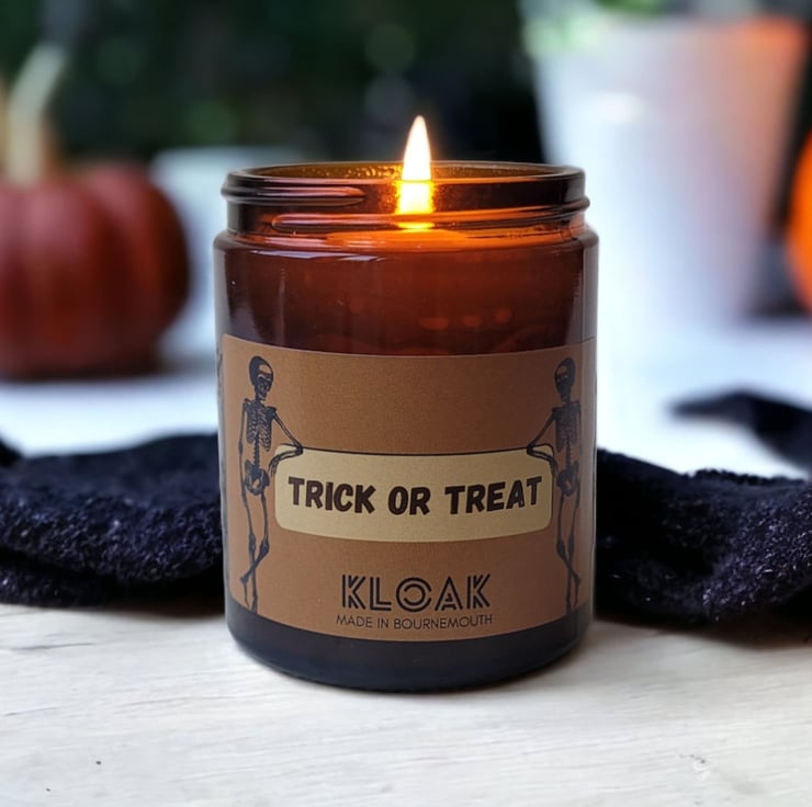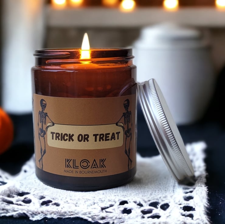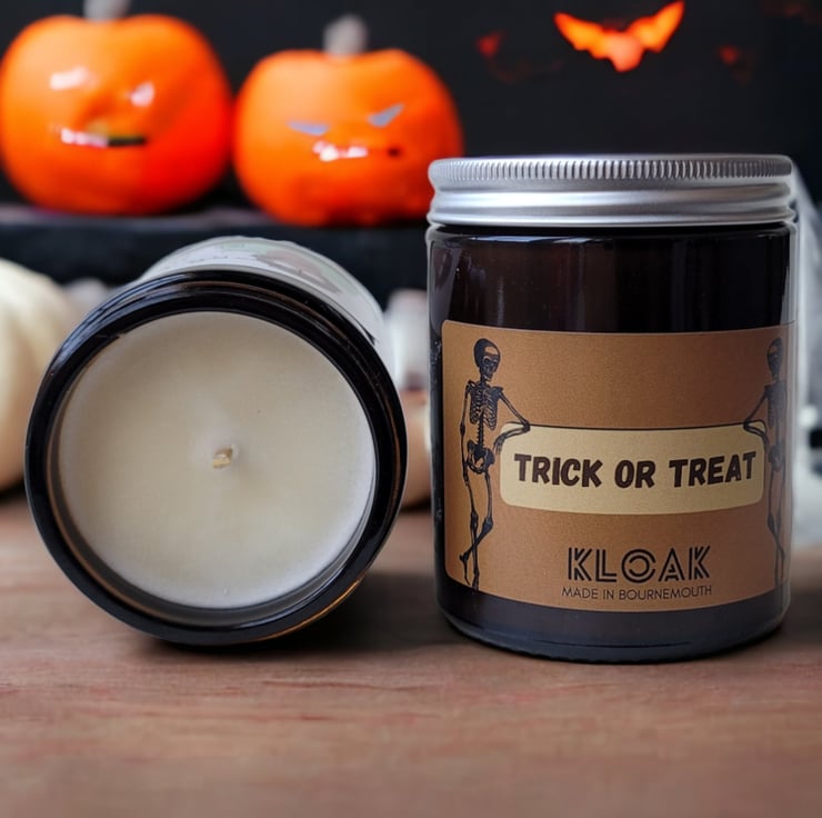 Skeleton Trick or Treat Candle – Handmade Halloween Home Fragrance