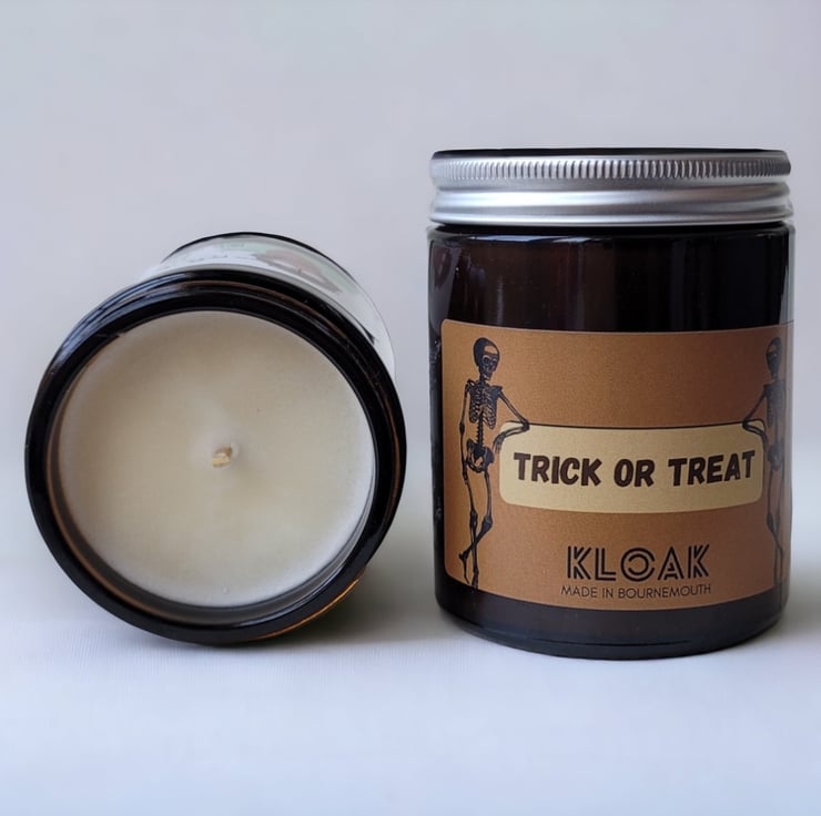 A thoughtful handmade gift for Halloween enthusiasts or a delightful treat for yourself, our Skeleton Trick or Treat candle is a fun, fragrant way to celebrate the magic of October.