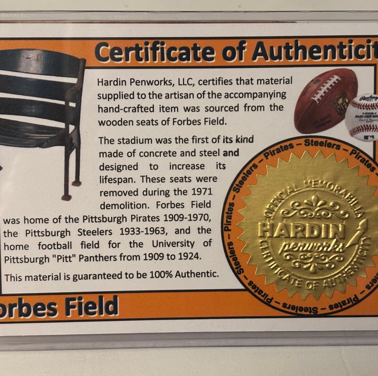 Perfect for Christmas, birthdays or collectors and comes with an impressive embossed and hologram sealed certificate of authenticity as shown in the product images. This unique and historic ballpoint pen made from reclaimed certified wood from seats installed at the now demolished Forbes Field, That was the home of the Pittsburgh Pirates Major League Baseball team from 1909 to 1970. Hand turned by me in my own workshop. The wood was obtained from seats installed in 1909 and removed in 1971 during its demolition The wood from this seat has seen its share of historic events at this ball park .
