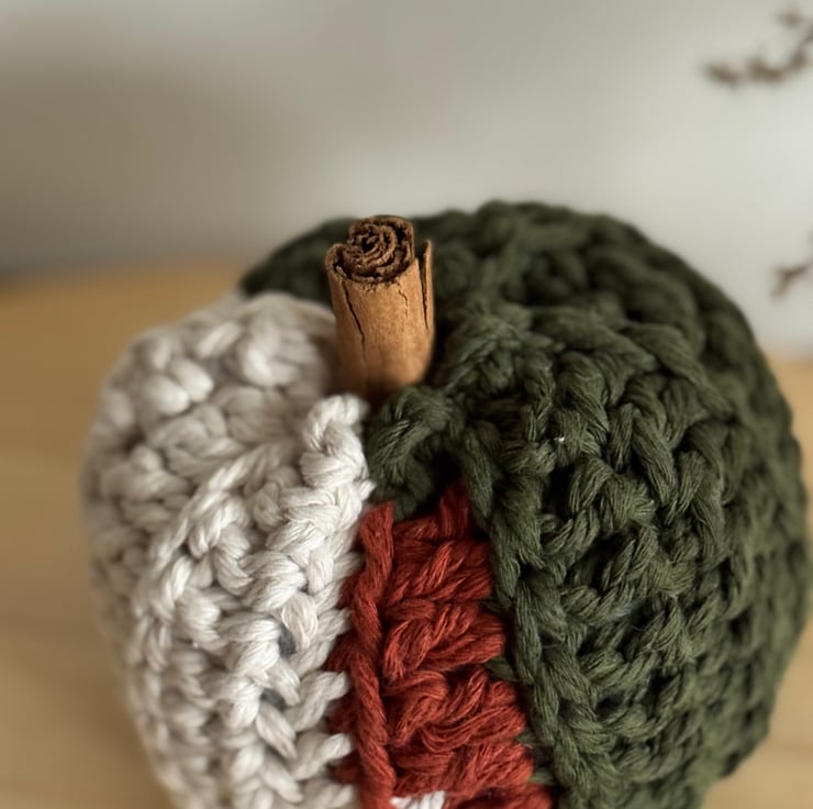 Standing 12cm tall and topped with a natural cinnamon stick stalk, this one-of-a-kind pumpkin has been lovingly handmade from leftover yarn and threads from the pumpkin collection, as Made Sincere believes in zero waste. Each stitch tells a story of sustainability, proof that even pumpkins can be beautifully imperfect and kind to the planet, just like natural pumpkins.