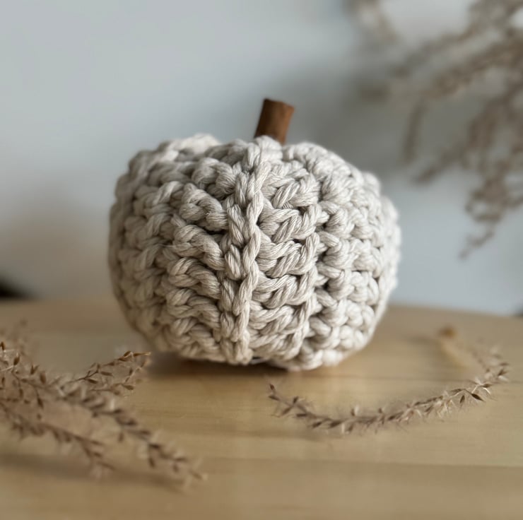 I wanted to create an autumnal decoration that could be enjoyed year after year something timeless, natural, and a little bit cosy. Using sustainable cotton yarn and real cinnamon sticks, these pumpkins capture the scent and spirit of the season without creating waste. They’re designed to be a reusable piece that brings warmth and charm to your home every autumn.
