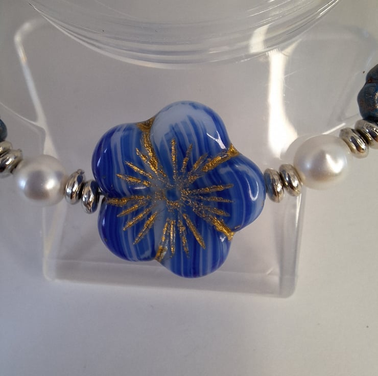 Beaded bracelet featuring beautiful blue Czech glass beads