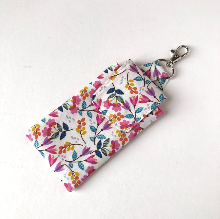 The pouch has a matching strap with swivel clasp so that you can attach it to your bag or belt and the flap secures with a magnetic snap.
