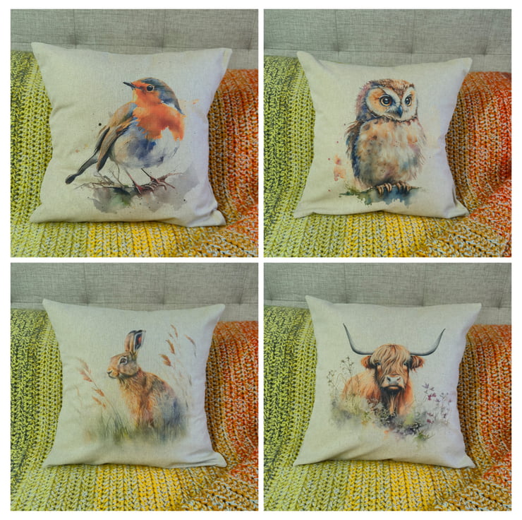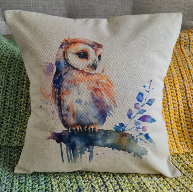 Beautiful cotton rich linen-look cushion cover with stunning digitally printed Owl design. 6 options available. Envelope backing in coordinating fabric (no zips on the sofa!). Cushion cover fits an 18 inch (45cm) insert pad. Option to purchase a cushion insert also available. Cushion sizes are slightly smaller than 18 inches to allow for a plump finish.