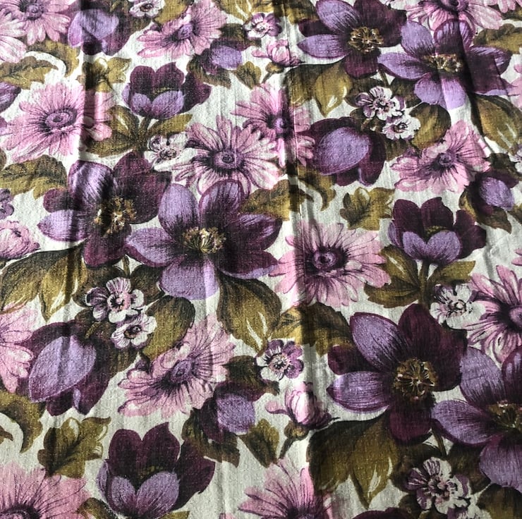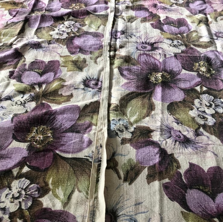 Vintage Barkcloth - Purple Daisies, lovely 1960's piece of barkcloth, used to be part of a curtain, and is 2 pieces of fabric sewn together.