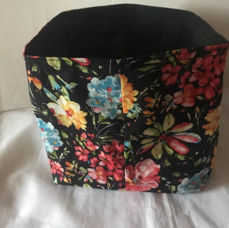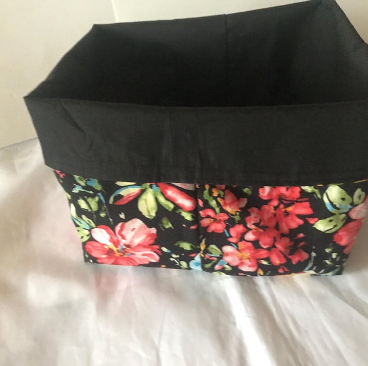 Fabric Storage Box Black Floral Cotton Reusable Storage Caddy