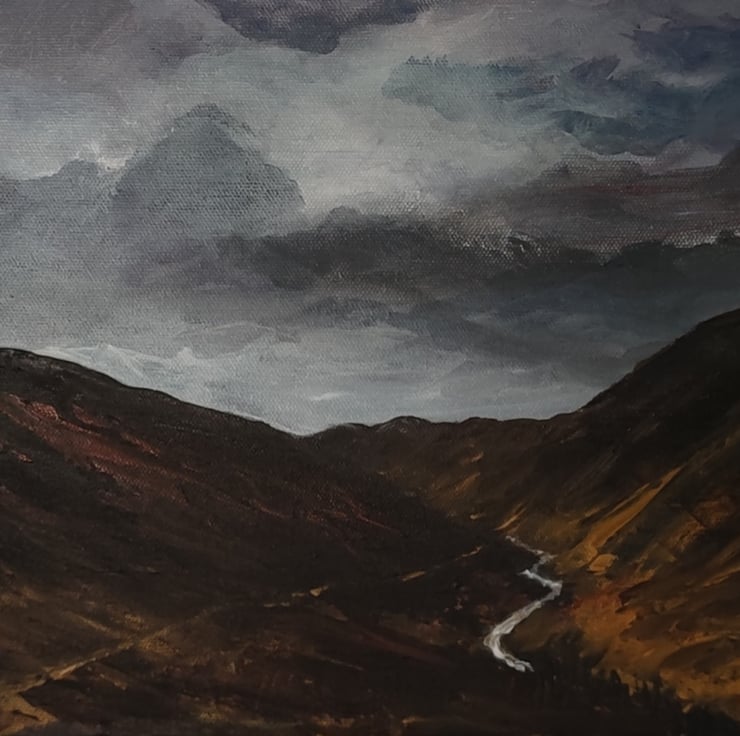 My collection of Scotland paintings try to capture the feeling of timelessness. The landscape there feels so old but also its still changing and growing with rivers carving away at their banks and the growing deer population slowly changing the shrub lands into moorlands.