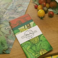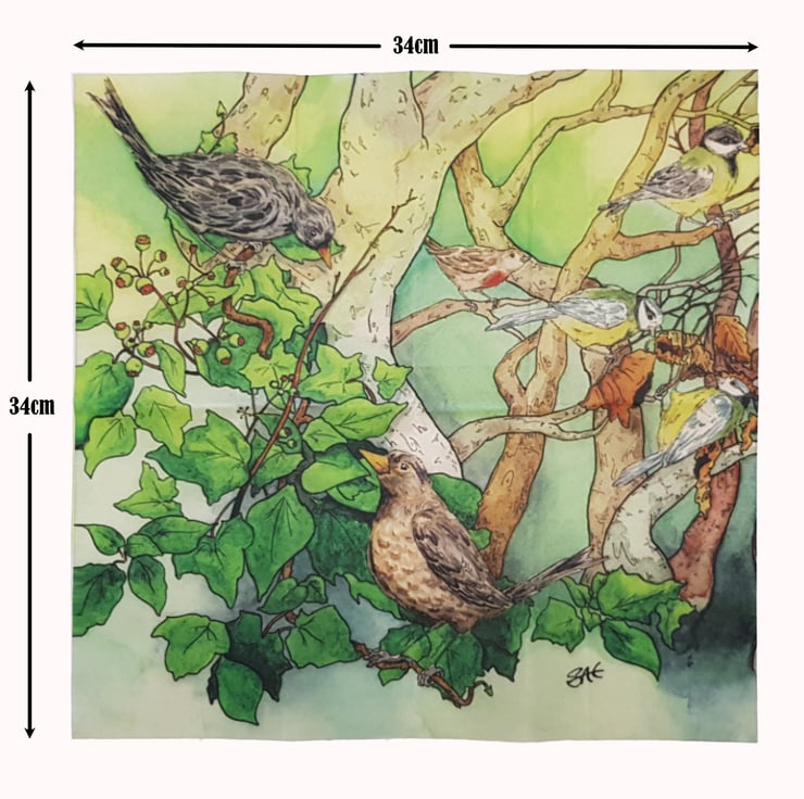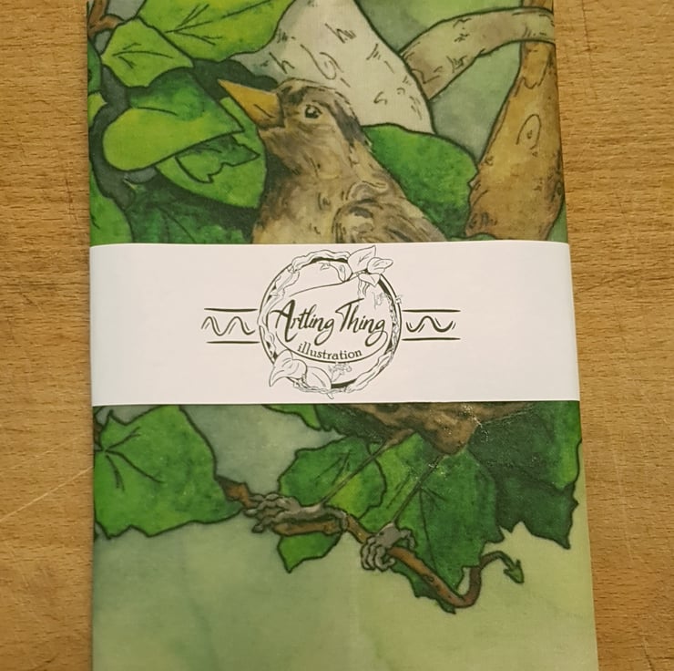 A Handmade Beeswax cotton wrap with a Blackbirds and Ivy design.