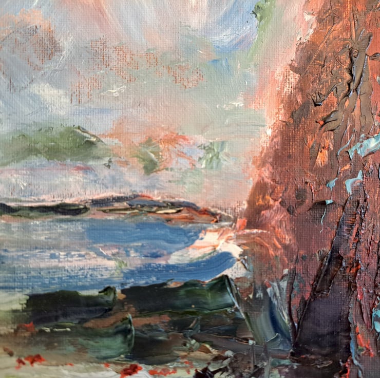 Expressionist Seascape painting inspired by the holidays I take in Cornwall. Painted in Oils on 3mm canvas panel.