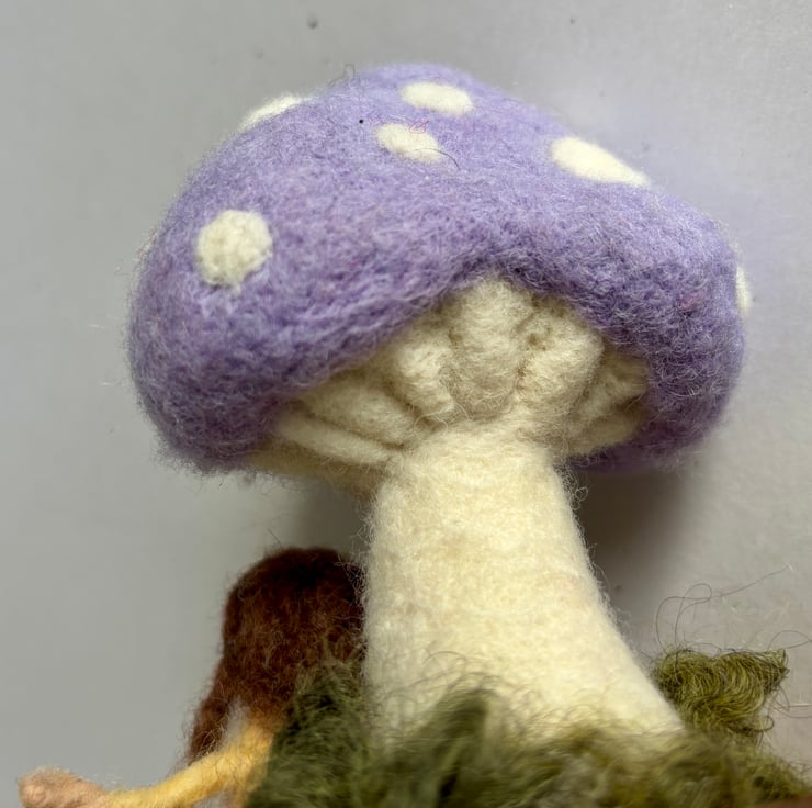 I love anything purple and after making a pastel coloured pot of toadstools I had to make a lilac one! As it’s solid wool it took me around 40 hours to make the entire piece by stabbing wool to bind it together.