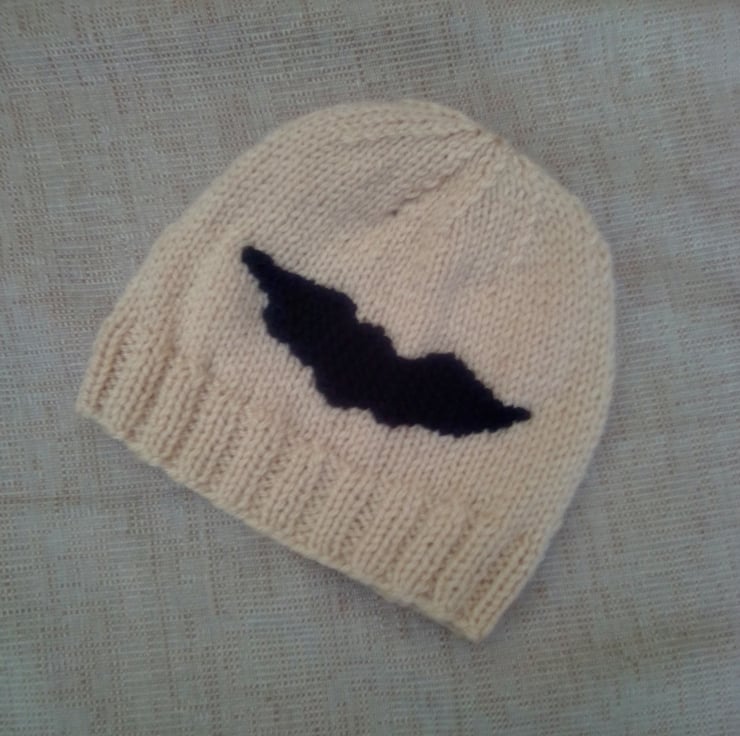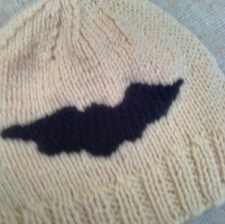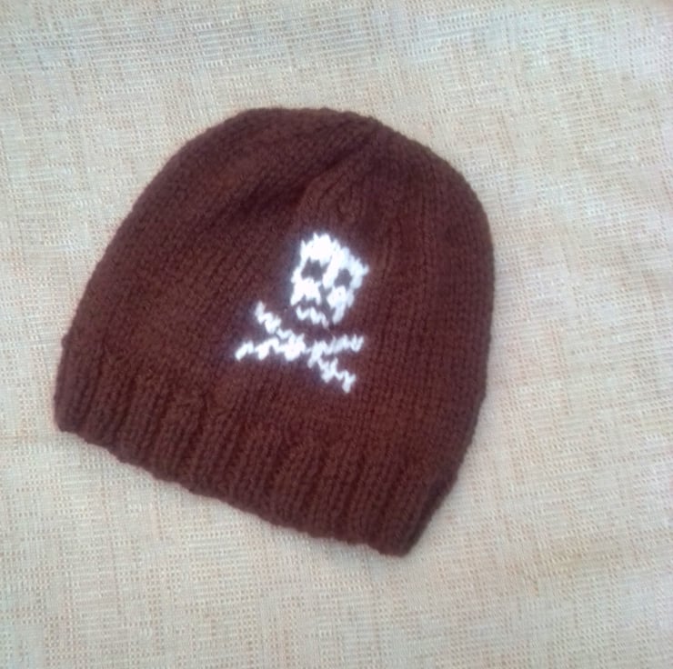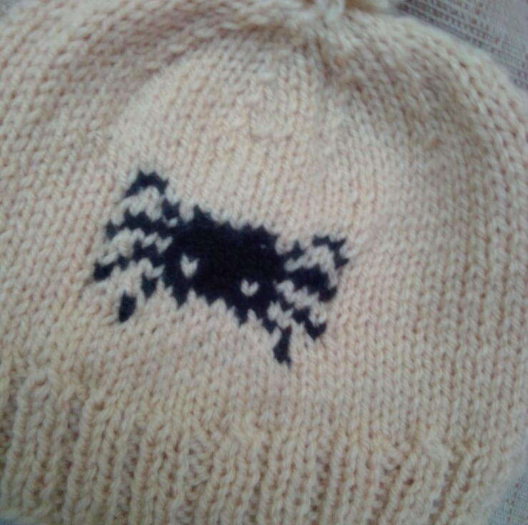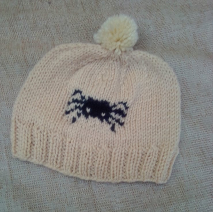 This novelty knitted hat is hand knitted in double knitting yarn. It would make an ideal gift for a baby for Halloween or just as something to keep your little ones warm at a chilly Halloween.