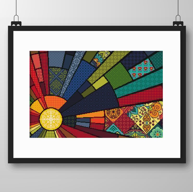 Cross Stitch Patchwork Sun - Ottoman/Bohemian Islamic/Arabic Quilt - Ethnic Folk Art design by Vivsters- PDF counted chart 276