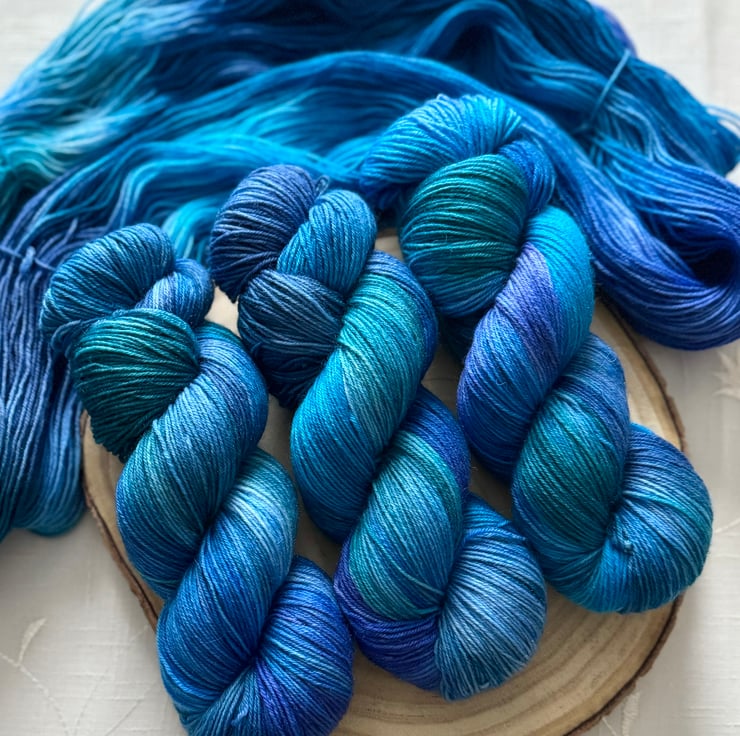 The yarn is dyed in batches and as with all hand dyed yarns, no two skeins are identical. If you are using more than one skein for a project, I would recommend alternating skeins regularly to create an evenly blended overall effect.