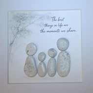 A playful and heartwarming pebble art piece made from natural sea stones.