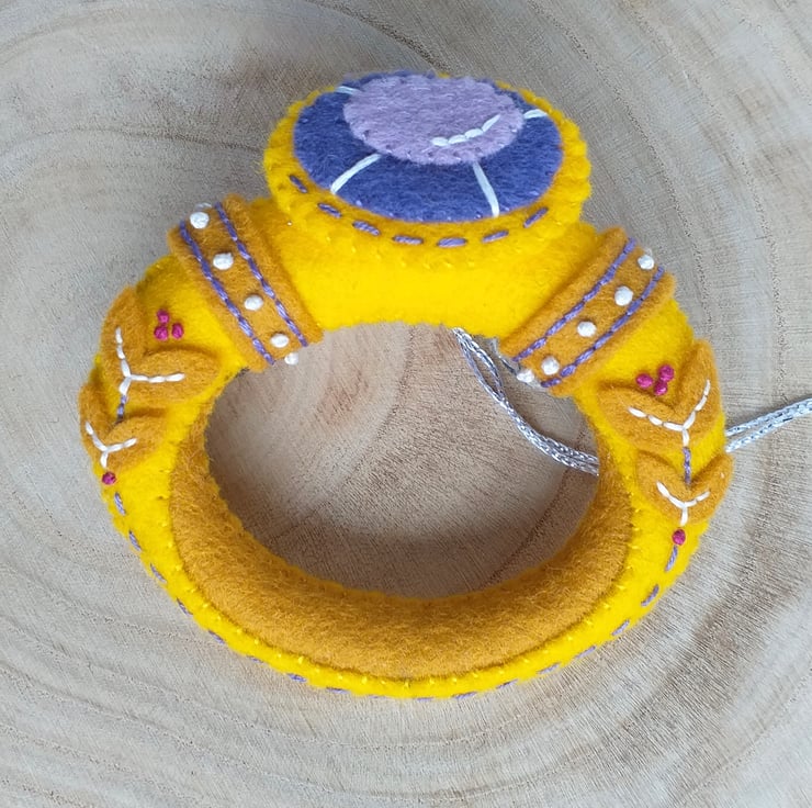 Wool Felt Golden Ring, 12 days of Christmas Tree Decoration