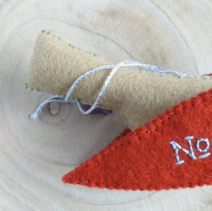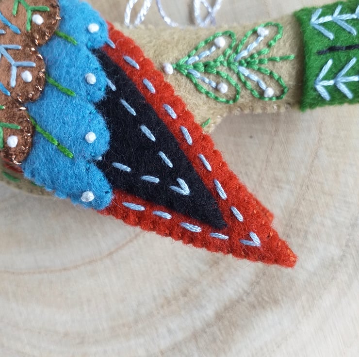 Made with 100% wool felt, metallic wool felt and embellished with hand embroidery.