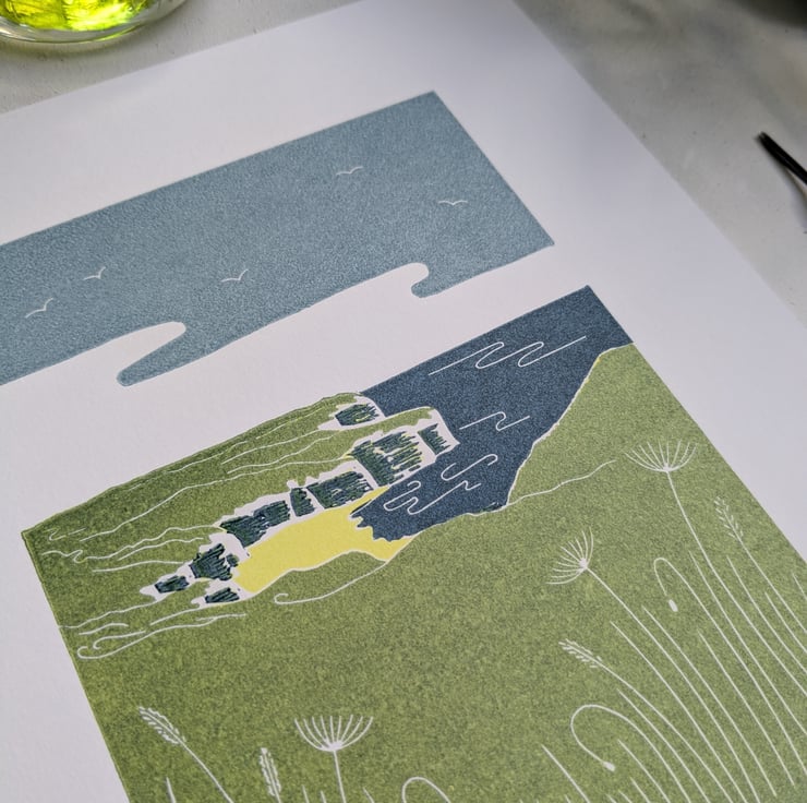 Flamborough Head Print, North Yorkshire Coast Linocut Print, Limited Edition