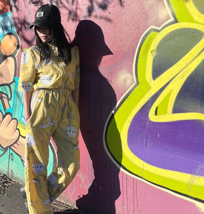 I love boilersuits, find them practical & comfortable. When I saw the fabric on sale in the form of a duvet cover, I knew it would look great made up in one of my boilersuit designs.