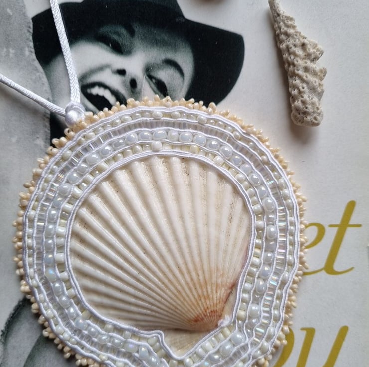 “Whispering Shell” is a handmade amulet created from a large, flat shell found on the shores of Edinburgh.
