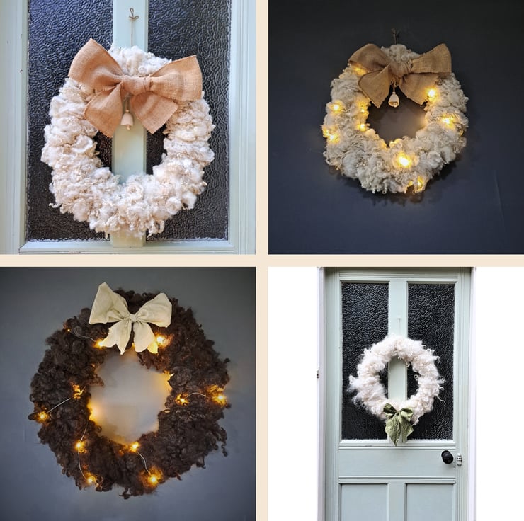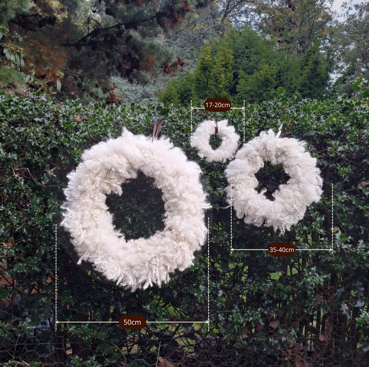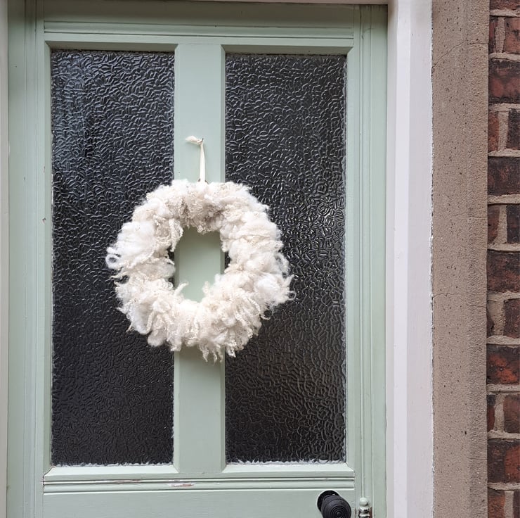 It is made from natural British sheep wool, wrapped on a hand-woven wooden ring. Due to the handmade nature of the wreath, a slight variation in texture and colour tone is possible.