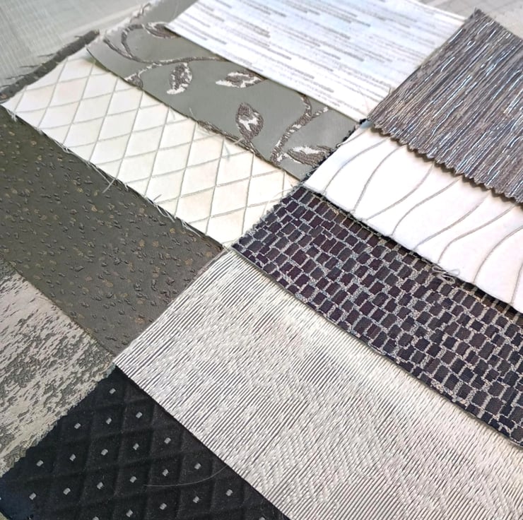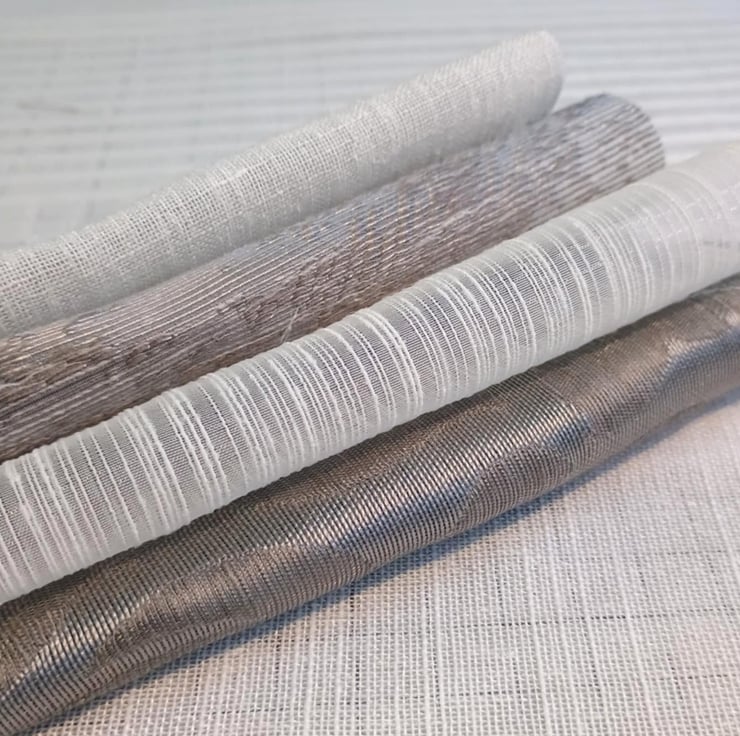 - Textured curtain fabrics including shiny and matt satin, metallic
