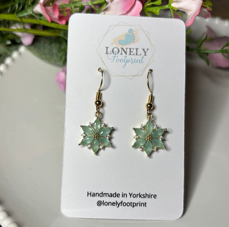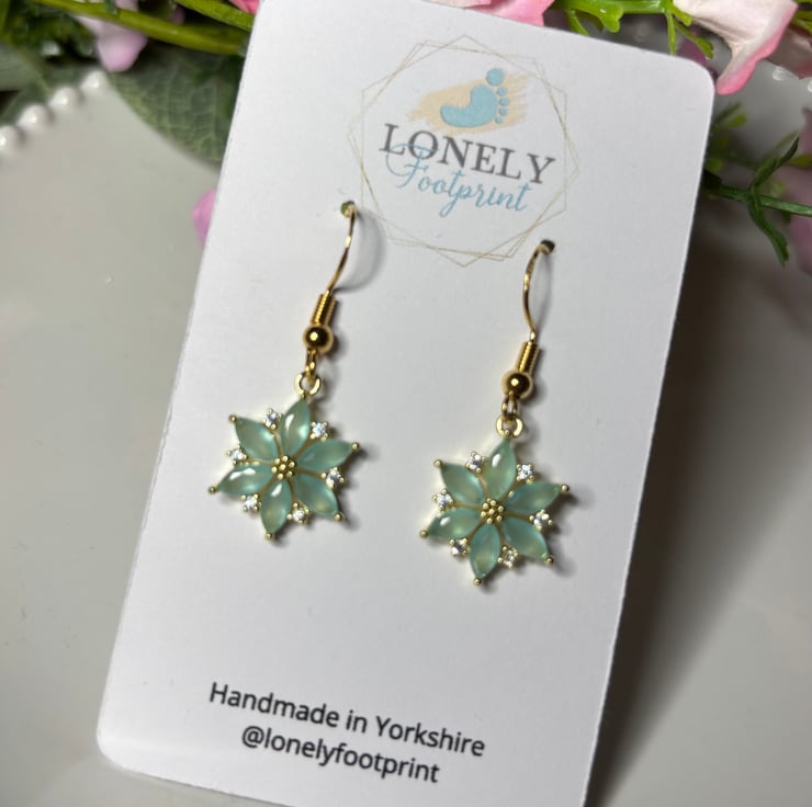 Pretty green crystal flower charms. Perfect for everyday wear or as a thoughtful gift.