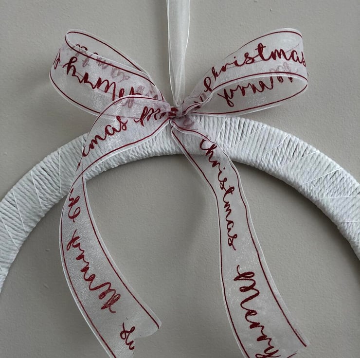 The wreath measures 30cm diameter with a long length of ribbon for hanging.