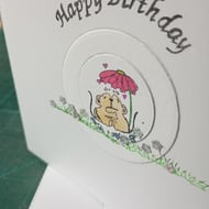 A completely handmade and uniquely designed card. Consisting of stamped image hand coloured and embellished with daisy sequins