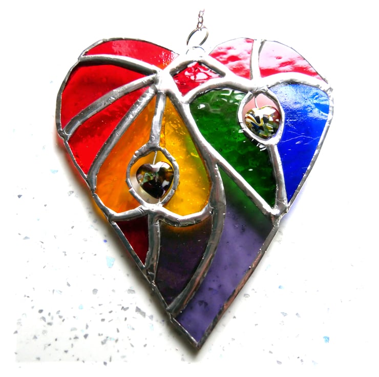 Inside each of the two smaller rainbow hearts is a gorgeous multi-colour heart bead.