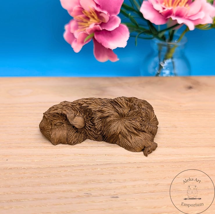 Sleeping Abyssinian Guinea Pig Sculpture, Mini Memorial Keepsake