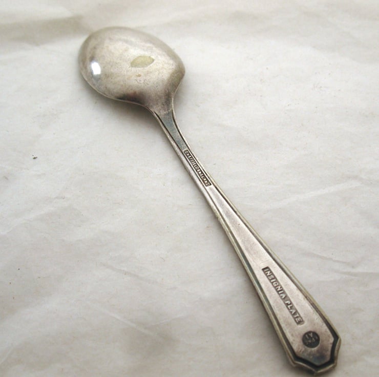 The spoon is a vintage silver-plated teaspoon approx. 13cm long, it's a bit old and worn but you don't exactly need museum quality for this sort of message, do you?