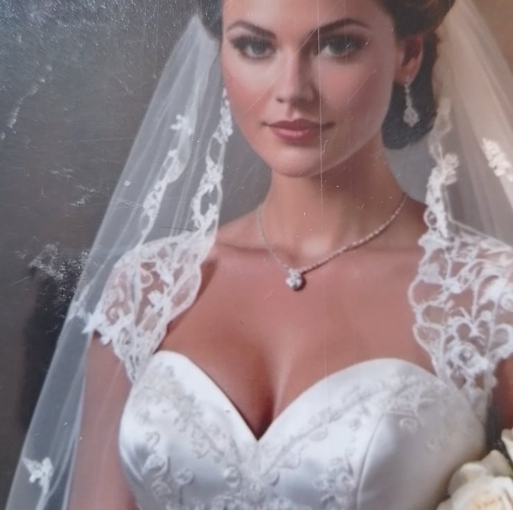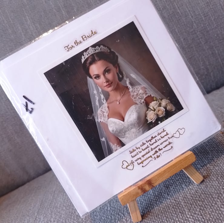 A 6" sq card showing a bride in her wedding dress, all cards come with matching envelopes and are cellophane-wrapped to keep clean. This lovely card gives a special wish just for the bride