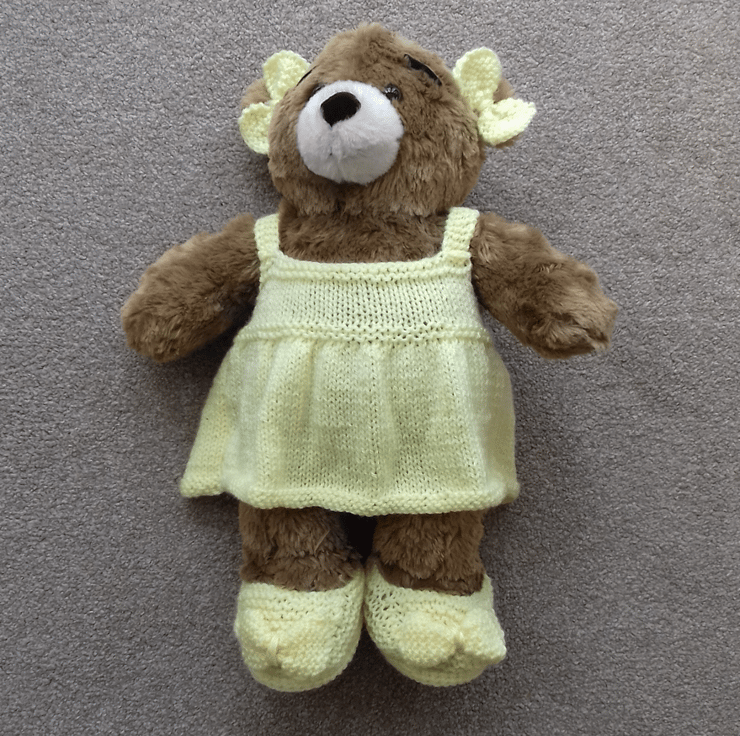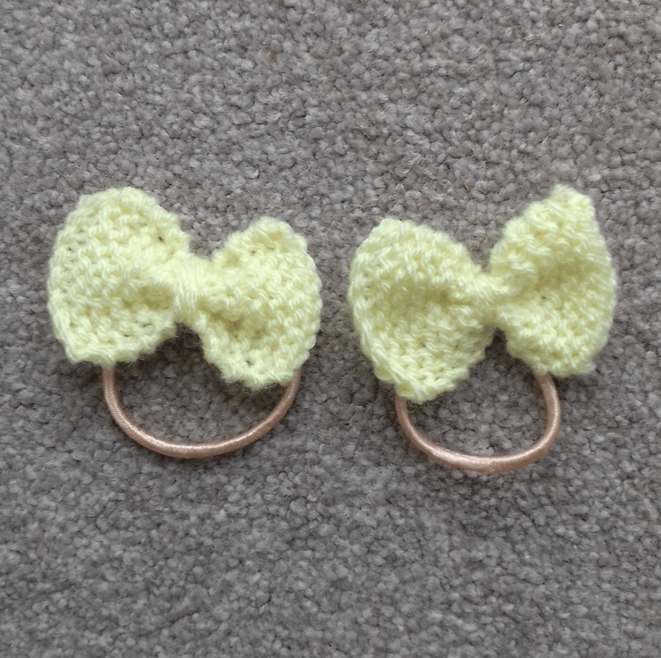 This hand knit PATTERN is for a pair of ear bows for a Teddy. To fit Teddy height: 38 (43: 48) cm or 15 (17: 19) inches. The ear bows are knitted in double knitting yarn using 3.25 mm knitting needles. You will also need two elastic hair bobbles.