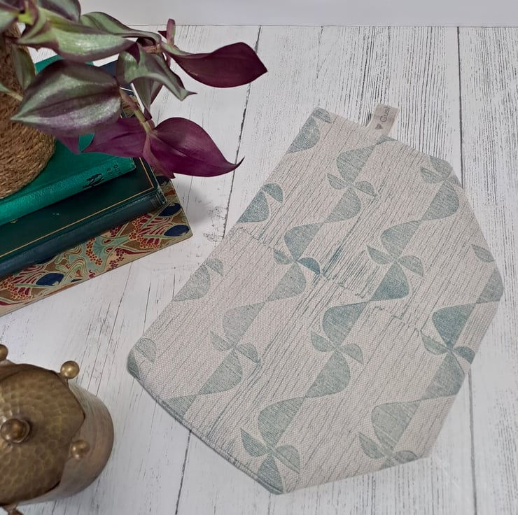 I hand carve my unique designs on to lino blocks then hand print on to linen and organic cotton. I mix the Eco-Friendly water-based inks in small batches, therefore there may be a variation in colour between subsequent batches