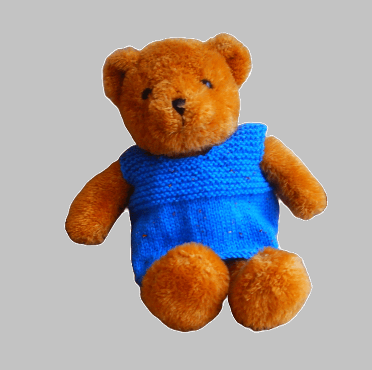 This hand knit PATTERN is for an outfit for a Teddy. To fit Teddy height: 38 (43: 48) cm or 15 (17: 19) inches. The outfit is knitted in double knitting yarn using 3.25 mm and 4 mm knitting needles. You will also need two small buttons.