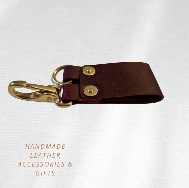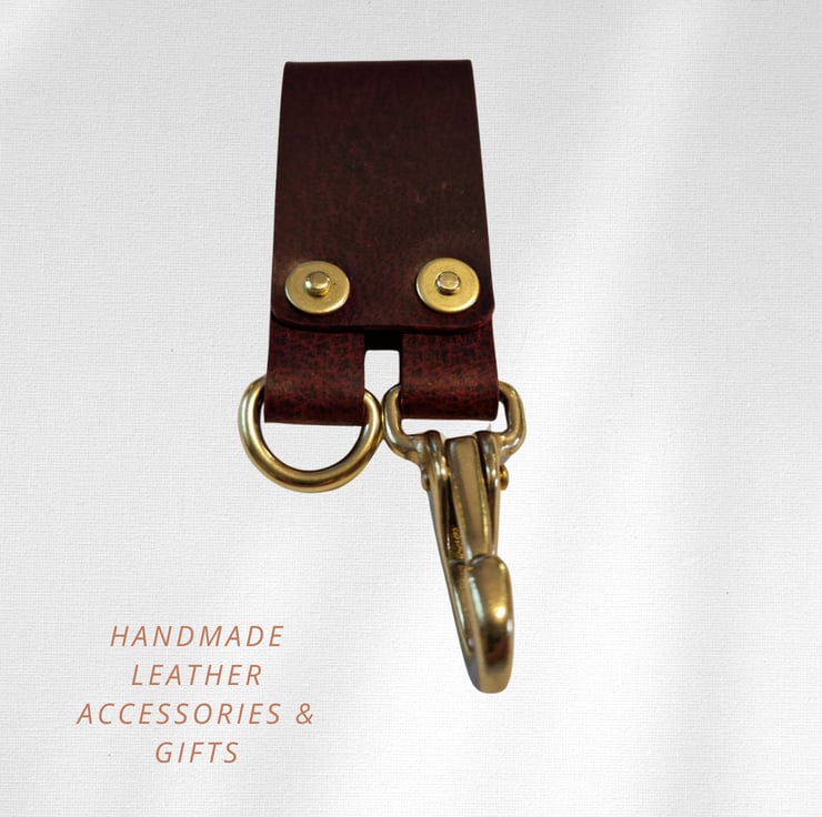 This handcrafted leather belt clip is made from premium Crazy Horse leather in a rich oxblood colour that deepens beautifully with age and use. Designed for durability and versatility, it clips securely onto any belt up to 4 cm wide, giving you an elegant and practical way to keep your keys or gear close at hand.