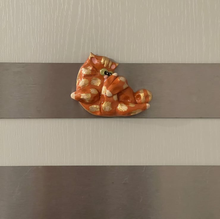 This adorable grooming ginger cat magnet is made from clay and coated with UV resin for a smooth finish. A purrfect present for any cat lover.