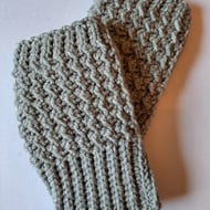 I designed this item using the Even Moss Stitch to texture the middle while alternating double crochets and slip stitches on the ends to create a nice ribbed texture. These gloves are reversible if so desired. I really like using this yarn type because it feels very soft and isn't irritating to my sensitive skin.