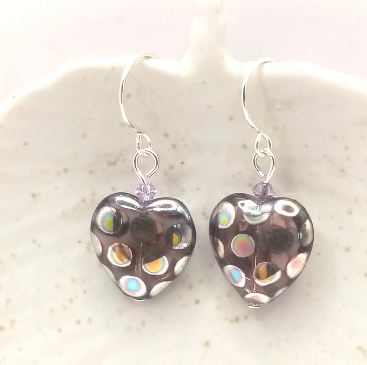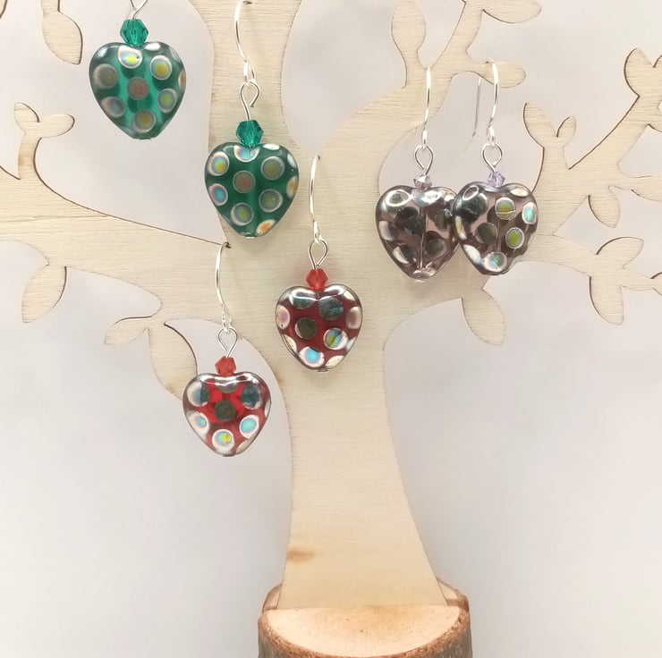 Czech Glass Heart Earrings, Gifts for her birthday, Christmas gift, Free Postage