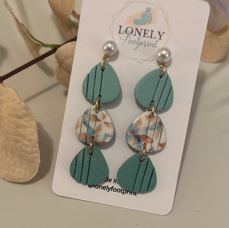 These handmade sage green mosaic polymer clay earrings with faux pearl studs are lightweight and are perfect for everyday wear. They would make a lovely gift or treat for yourself.