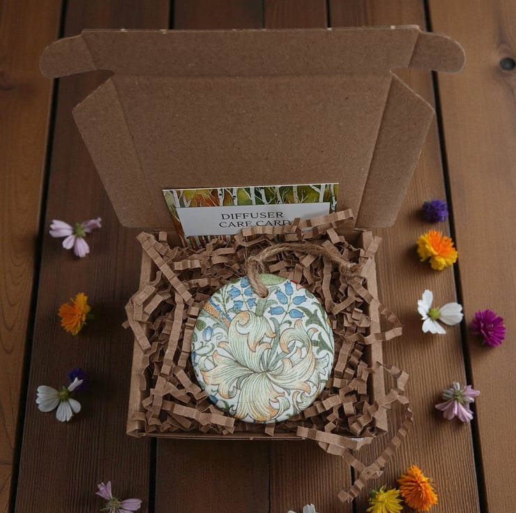 How to Use To use, add 3-4 drops of your preferred essential or fragrance oil onto the back of the diffuser and leave flat for a minute or two for the oil to be absorbed, then hang in your desired area. The scent should last for a few days, to refresh add more oil. There is no need to clean if you want to use different oils. Do not immerse in water, if necessary clean by wiping with a dry or damp cloth. Please note oils can stain surfaces, ensure oil is fully absorbed before putting near clothing.