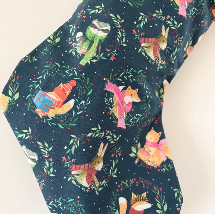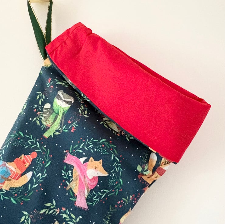 This cute, traditional Christmas decoration has been handmade with a 100% cotton fabric with a bright festive red poly-cotton lining. Perfect for a children's bedroom or as part of a woodland Christmas theme.
