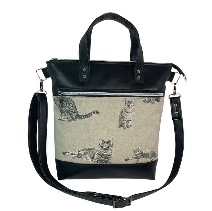This adaptable bag can be either a medium sized tote or a medium to large sized handbag, with the addition or removal of the crossbody strap.