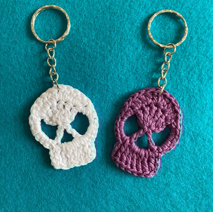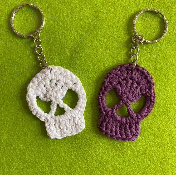 Handmade Crocheted Spooky Halloween Skull Bag Charm Key Chain